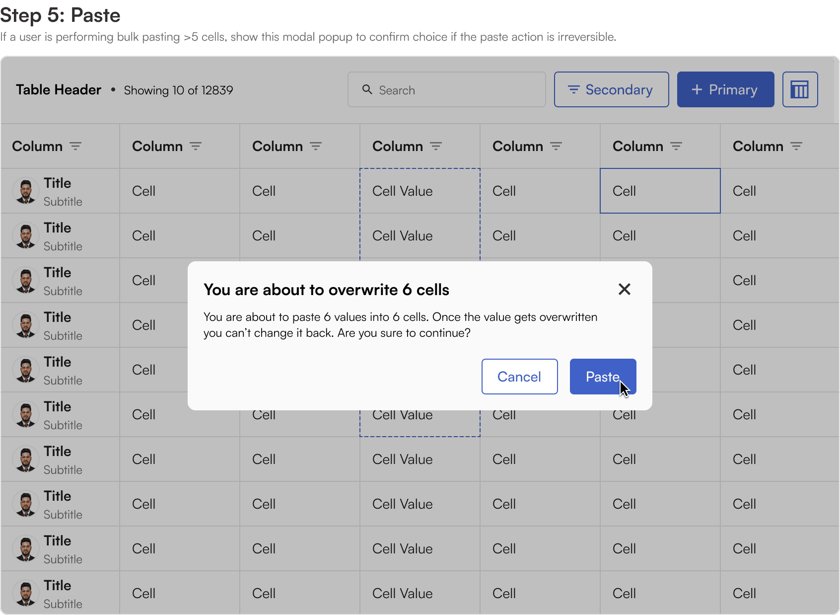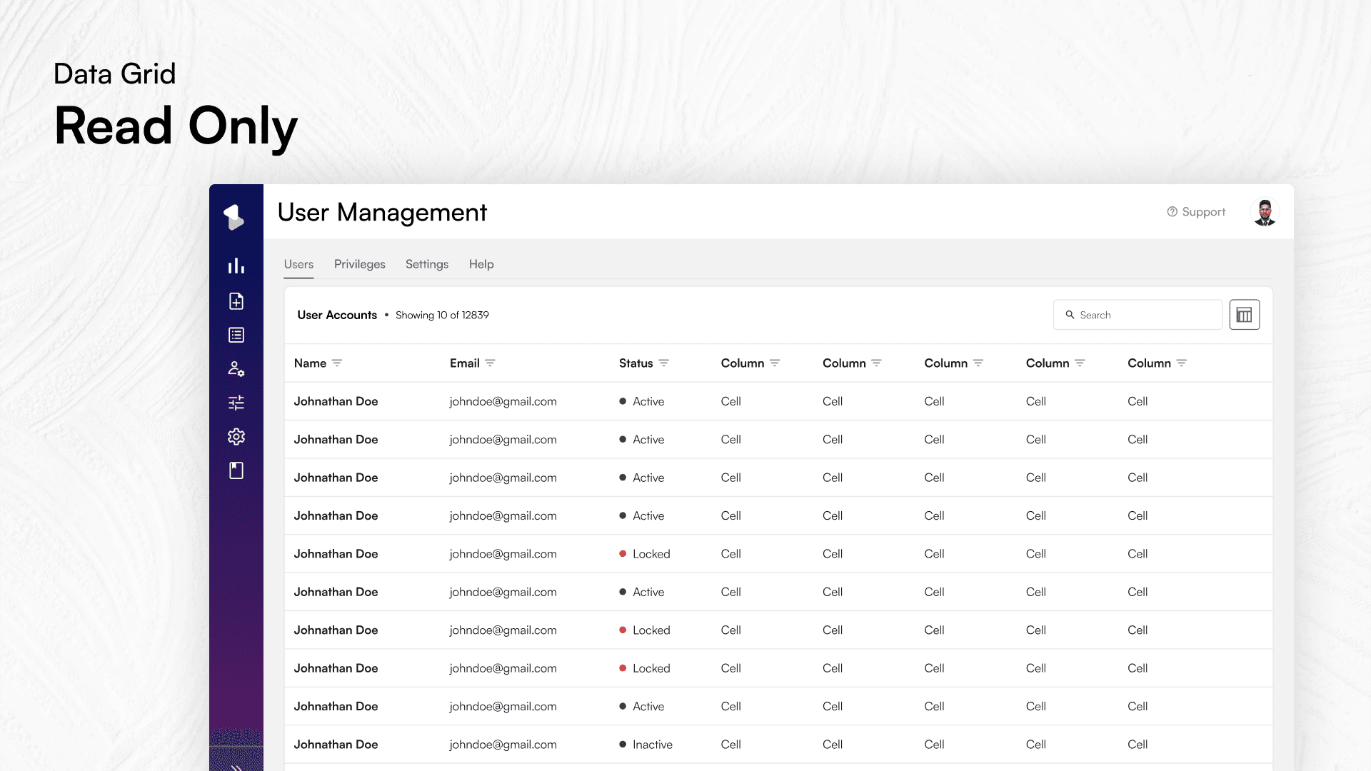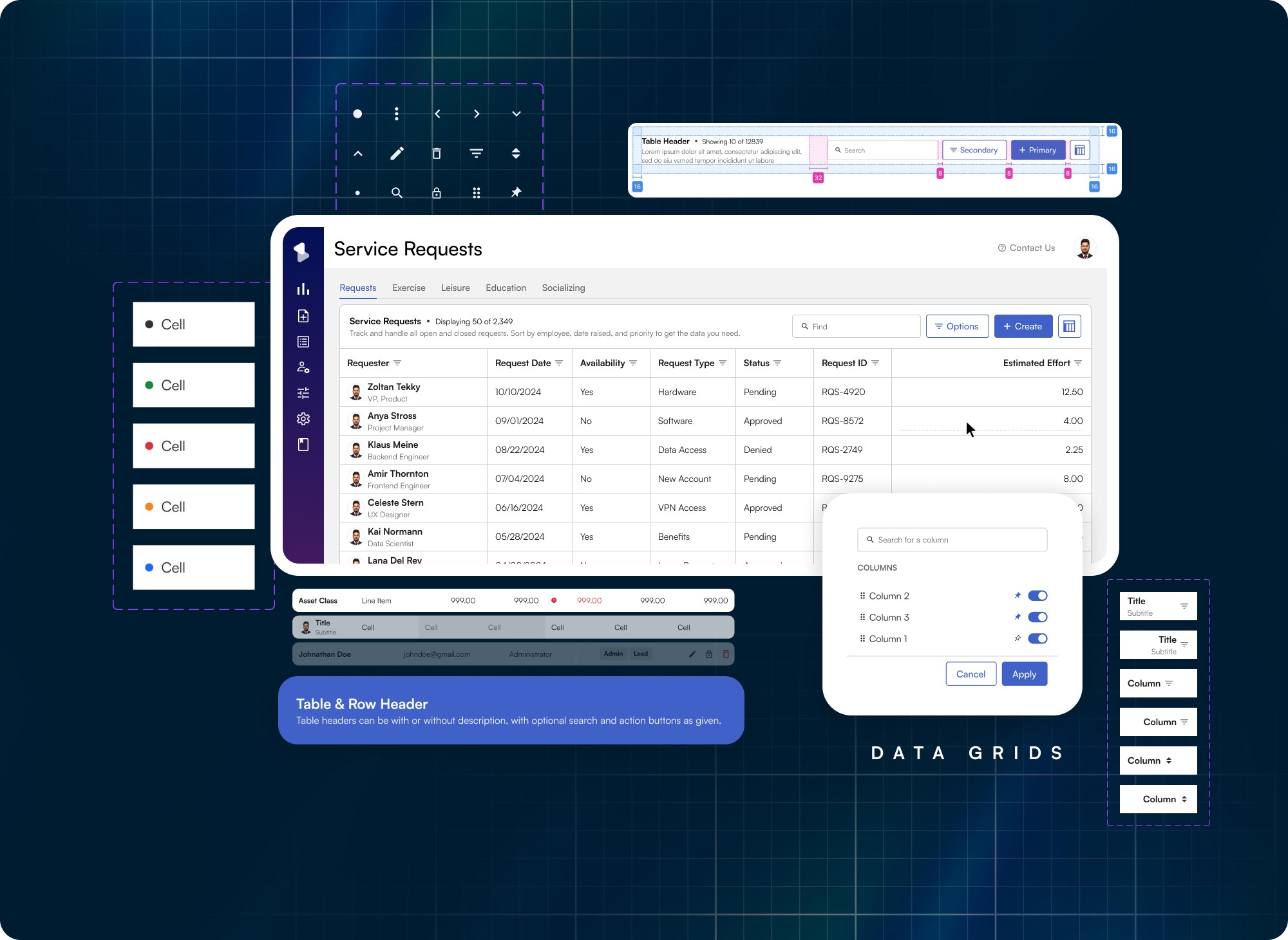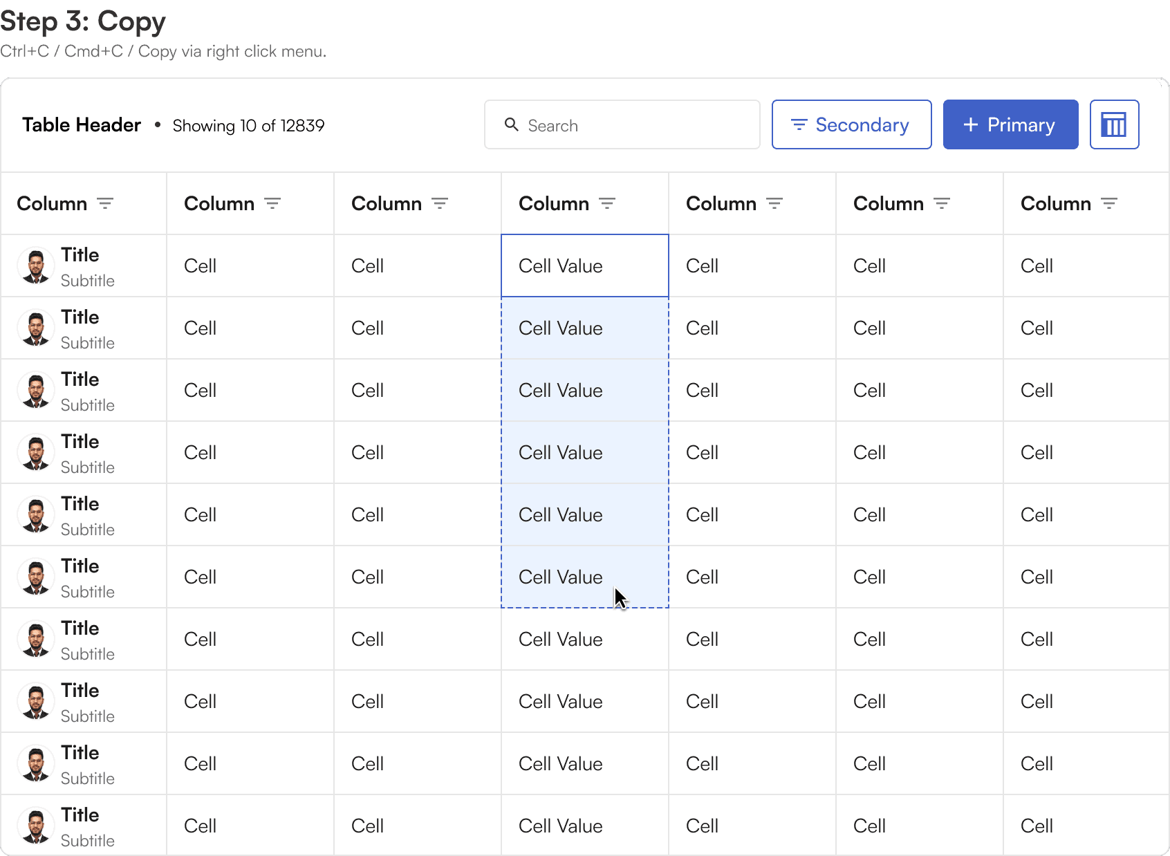 However, as listed in the BEAT's UI kit grid section, many other data types or specially formatted text can be contained in the cell, including drop downs, phone numbers, currencies, and date pickers.