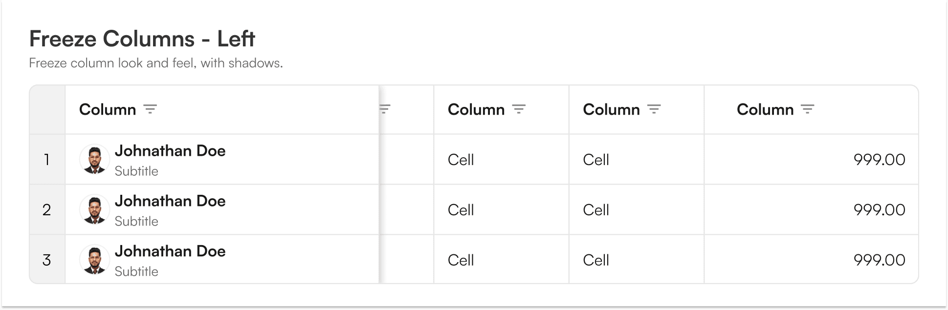 The first column of a grid can be frozen, that is, locked in place so that the table data scrolls to the left underneath it.