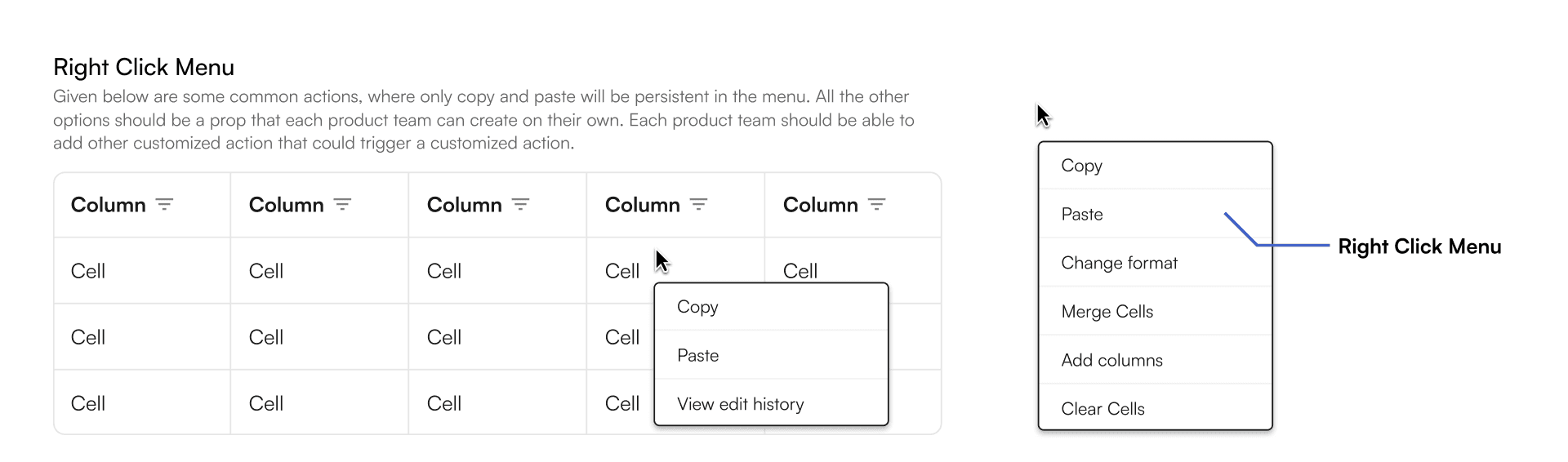 Right-clicking on a cell, at minimum, reveal a dropdown with options to copy, cut and paste.