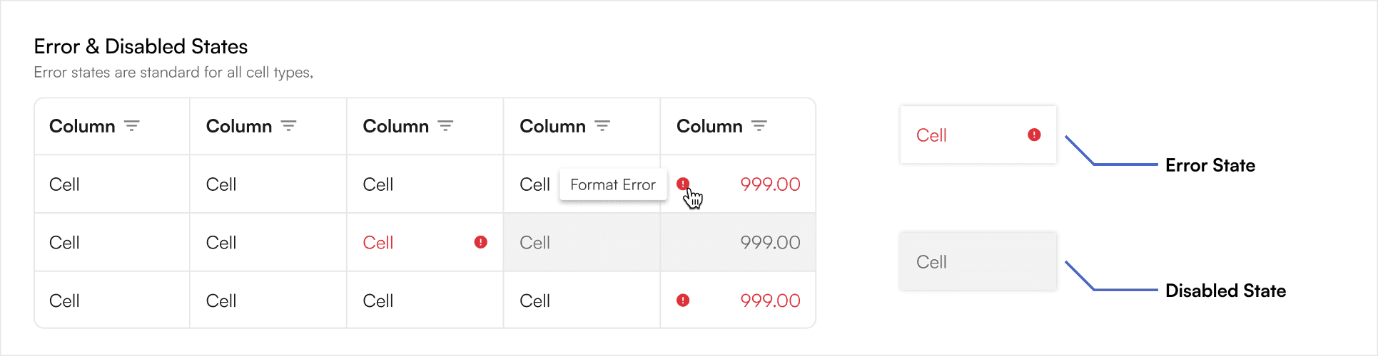 Cells within editable grids can also be disabled, preventing any editing to certain cells.
