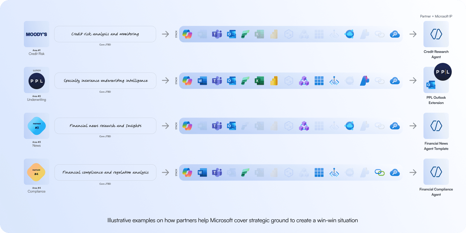 Each FinAgent starts with a clear purpose and a partner who knows the domain inside out. Partners like Moody’s and Lloyd’s PPL bring their data, intelligence, and years of expertise, while Microsoft provides the cloud and collaboration stack that makes scaling possible. Together, they address areas such as credit risk, underwriting, financial news, and compliance. Each partnership creates a shared foundation that turns specialized workflows into working agents.