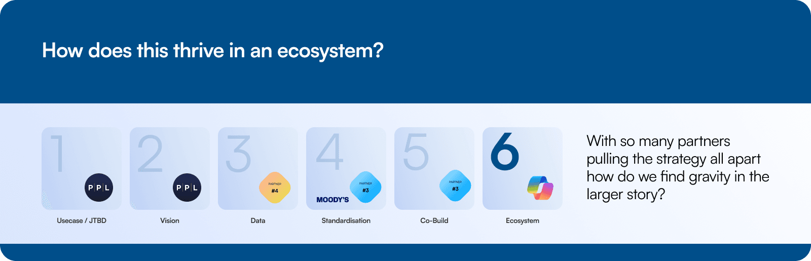 When you’re co-building with so many partners, the first question is always the same, how do we find gravity in all that motion? The ecosystem play became our answer. It helped us hold the center while making space for new partners to join the story. Instead of every partner pulling in different directions, we built a way to align around shared customer value.