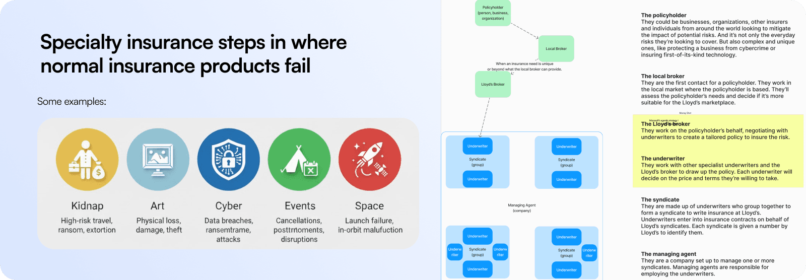 Specialty insurance operates where standard policies and processes fall short, dealing with complex risks and highly tailored workflows. PPL plays a critical role in this ecosystem through its digital placing platform that connects brokers and carriers across the London market. Our work built on that foundation, exploring how an agentic layer could enhance the platform by surfacing insights, reducing manual effort, and helping underwriters and brokers focus on real risk decisions instead of repetitive tasks.