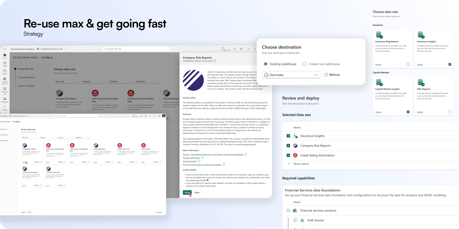 To accelerate this, we leaned on Microsoft’s existing industry investments. We studied data solutions across agriculture, healthcare, and sustainability, benchmarked competitors, and reused what worked. By aligning patterns, we could design faster and focus on the differentiators that mattered most to financial services.